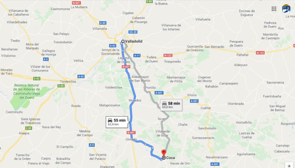 A unos 63 km de Valladolid, por la N-601.